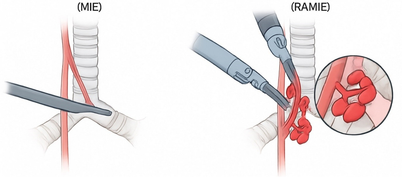 лимфодиссекции возвратного гортанного нерва (ВГН) при МИЭ и RAMIE.